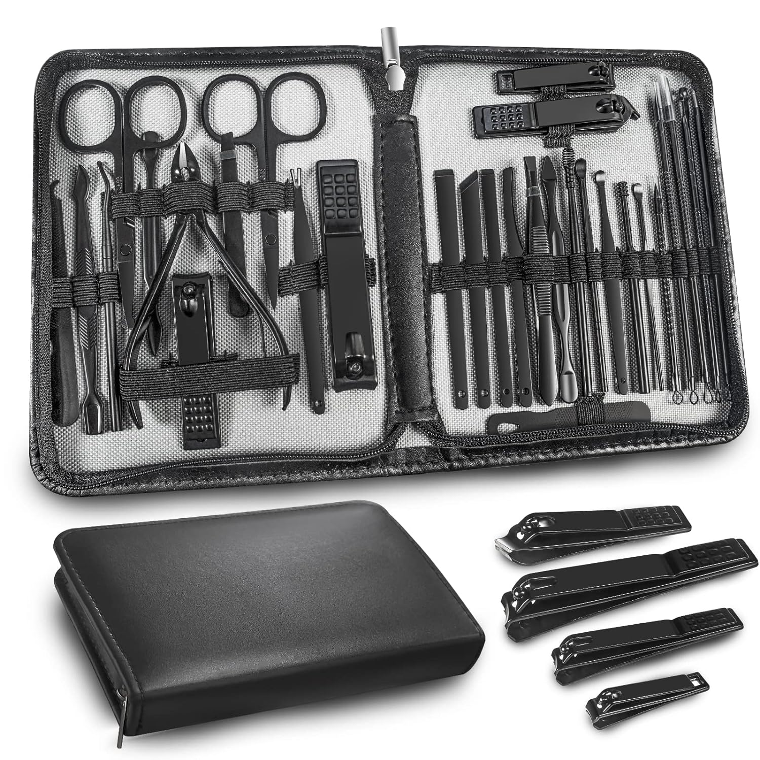 Manicure kit Personal Care Mens Grooming Kit, 30 In 1 Professional nails Kit Pedicure Kit, Nail Clippers for Men and Beauty Tool Portable Set, with Luxurious Travel Case (Black)
